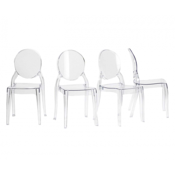 CHANTAL Sedie a medaglione stile Luigi XVI in plastica, trasparenti, impilabili da esterno ed interno, moderne per giardino, veranda, casa, negozio, bar, pasticceria, ristorante, albergo, matrimoni, wedding, eventi, catering al miglior rapporto prezzo-qualità.